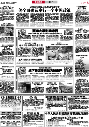 海南日报 中国新闻综 合 004 2010-04-031 2010年04月03日 星期六