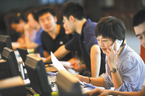 4月2日,在琼海市博鳌镇一家酒店内,博鳌亚洲论坛2010年年会礼宾组的工作人员正在紧张工作。 年会现场指挥中心的工作人员于4月1日正式进驻博鳌,开始紧张的倒计时工作。 本报记者 宋国强 摄