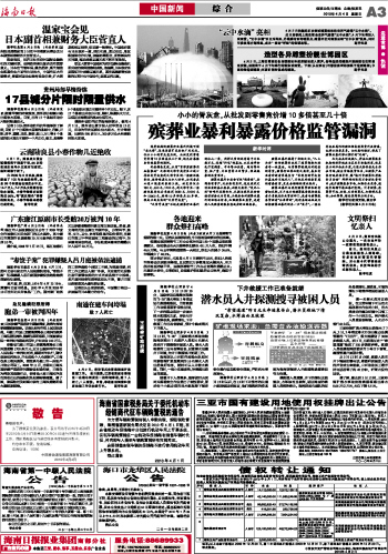 海南日报 中国新闻综 合 003 2010-04-041 2010年04月04日 星期日