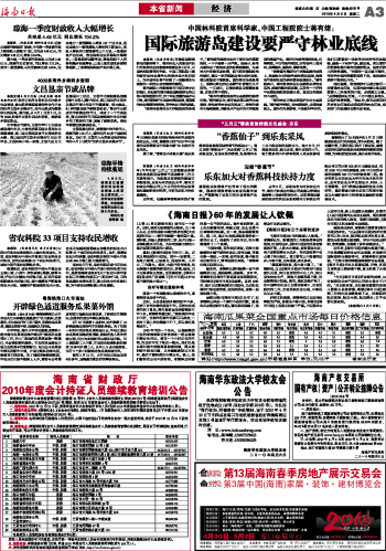 海南日报 本省新闻 003 2010-04-061 2010年04月06日 星期二