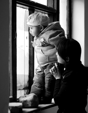 在北京寻医的李家租住在八宝山一处廉价的筒子楼里,母亲唐艳艳每天都要抱着小政霖看看窗外行驶的汽车(4月4日摄)。经过3个疗程的化疗,李政霖已经恢复到能够站立,医生说这是进行骨髓移植的最好时候。 新华社发
