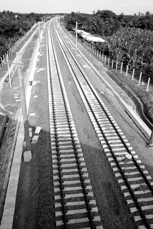 | ↑ 三亚至陵水段铁路正在铺设中。 |