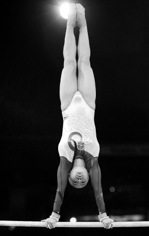 11日,在2010年体操世界杯法国站高低杠比赛中,何可欣以16.075分的成绩夺得金牌。 新华社发