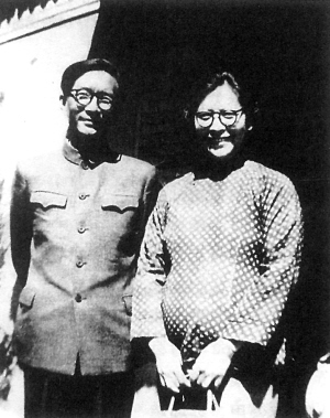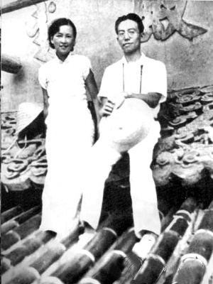| 1959年陈占祥与夫人陶丽君在北京西单横二条寓所垂花门前的合影。 |