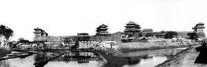 清代末年《辛丑条约》签定后,为让火车从天津直达正阳门,在左安门旁开了个城豁子,这是对北京城墙的第一次开刀。从此以后,对城墙的破坏一发而不可收。1916年,段祺瑞为讨伐张勋,拆了东安门南段的皇城。到内乱平息,皇城城墙多已拆除,只剩下残垣断壁了。