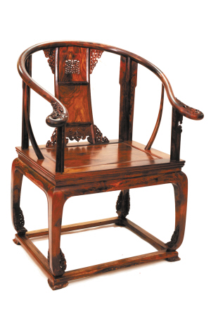 所谓皇宫椅,即在明式家具圈椅的基础上制作而成的一种多雕饰的带托泥圈椅。其满足了明清家具爱好者对明式家具简洁流畅和清代家具华丽大气的要求,因而广受藏家喜爱。