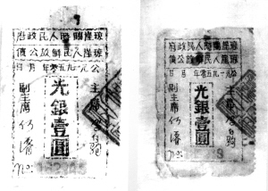 抗日战争胜利后,货币斗争的对象指向了国民党货币。1947年,琼崖总队司令部进入白沙县红毛乡(今属琼中县)后,为了方便群众买卖,琼崖特委发行了“光银代用券”,有一角和二角2种面额,共1400元,作为光银的辅币与光银等价流通;1949年6月1日,为满足根据地广大群众的需要,琼崖临时民主政府主席冯白驹和副主席何俊联名颁布发行“琼崖人民政府光银代用券”的公告,此次发行代用券3万多元,面值有五分、一角和二角3种,但不许外流到国统区,以提高根据地货币的威信;同时还揭穿了国民党大量发行金元券、银元券的欺骗行为,动员广大琼岛人民尽快用国民党的货币购买粮食或兑换光银储存起来,尤其是在根据地提倡物资交换,实物借贷,将国币、金元券、银元券打回国统区,换回必需品,免受国民党货币贬值而造成损失。