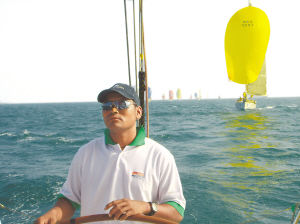 35岁的王少军身材高大,皮肤黝黑。这位土生土长的海南白沙人,虽然长在大山里,但从17岁开始便接触海上运动———帆船。从玩470级小帆船到驾驶十几米长、价值几百万的大帆船,他和帆船结下了不解之缘。他说:“操纵着一叶风帆在汹涌的波浪中航行,感受着那份惊险刺激,或者驾着帆船在平静的水面上行驶,偶尔闭上眼睛感受徐徐海风的那份惬意,正是帆船运动的魅力所在。”