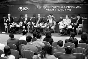 | 4月11日上午,博鳌亚洲论坛2010年年会举行“亚洲区域金融合作的创新思路”分论坛。 本报记者 宋国强 摄