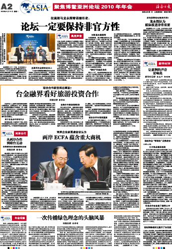 | 海南日报 聚焦博鳌亚洲论坛2010年年会 002 2010-04-121 2010年04月12日 星期一 |