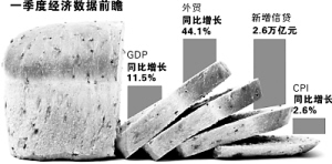 为此,本报“截取”了第一季度经济运行的一个“横截面”,并试图从“信贷”、“外贸”、“GDP”、“CPI”等观测样本中,对经济形势进行一次简单的体检,或能收到管中窥豹、以小见大的奇效。