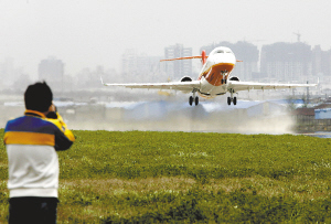4月13日,ARJ21-700飞机在上海试飞。 当日,我国第四架具有自主知识产权的ARJ21-700飞机在上海成功首飞,标志着我国新支线飞机进入高强度、大密度试飞阶段,这对于加快ARJ21-700飞机试飞取证工作、按期取得适航证具有重要意义。 新华社发