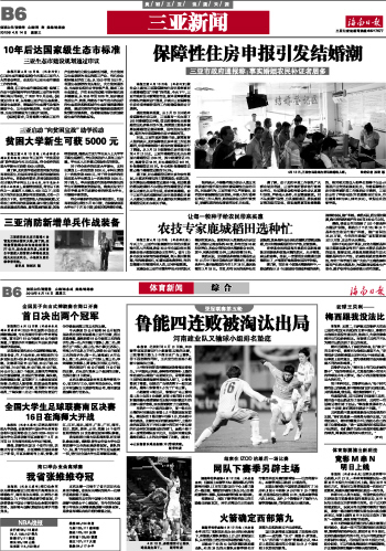 海南日报报业集团旗下媒体: 海南日报 | 南国都市报 | 南海网 | 南岛晚报 | 证券导报 加入收藏 | 设为首页