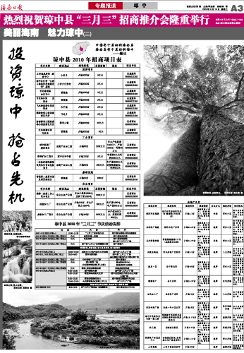 | 海南日报 专题报道 琼 中 003 2010-04-141 2010年04月14日 星期三 |