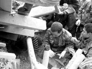 | 用手机拍摄的青海玉树州结古镇震后救援现场。 |