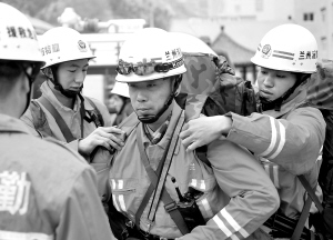 | 甘肃消防官兵奔赴灾区。 |