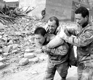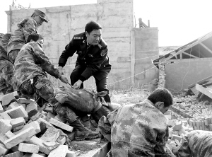 | 玉树军分区官兵全力抢救受灾群众。 |