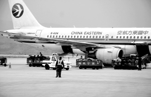| 西宁机场工作人员正在装运救灾物资。 |