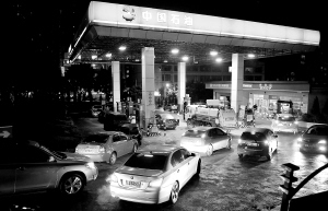 | 4月13日22点40分,汽车在重庆一家加油站排队加油。同日,国家发改委宣布,自4月14日零时起,全国汽油、柴油价格每吨分别提高320元。 新华社发 |