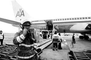 舱内出现不明原因的烟雾状气体 美航班机冒烟急降冰岛 4月13日,在冰岛凯夫拉维克机场,救援人员聚集在紧急迫降的飞机附近工作。 一架由法国巴黎飞往美国得克萨斯州的美国航空公司客机在13日飞行途中遭遇险情,急降冰岛一座机场,所幸没有人员伤亡。 美航AAL49航班原定降落得克萨斯州沃思堡市机场,但在飞行过程中机长向地面控制中心报告,舱内出现不明原因的烟雾状气体,有5至6人出现眩晕症状。 新华社/法新