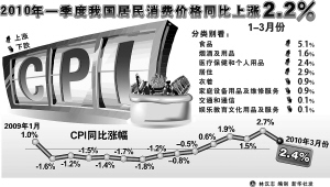 2.2%,一季度全国居民消费价格总水平(CPI)的同比涨幅让人们稍稍松了一口气。3月份的CPI环比甚至出现了下降。
