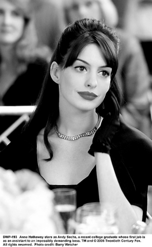 根据劳伦·魏斯贝格尔同名小说改编的《穿普拉达的女王》2006年上映后,曾经在全球掀起一股时尚风潮。影片讲述了一个刚毕业就进入一家顶级时装杂志社给女总编当助手的女孩噩梦般的经历。片中,好莱坞老牌影星梅里尔·斯特里普饰演过着奢侈生活的女总编,而哈撒韦饰演女总编的助手安德烈娅。