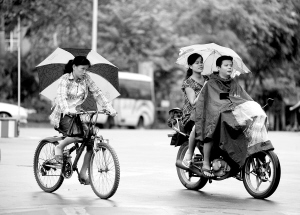 → 嘉积市民在小雨中出行。