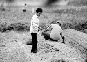 ↑ 嘉积镇的群众趁着降雨抓紧播种。