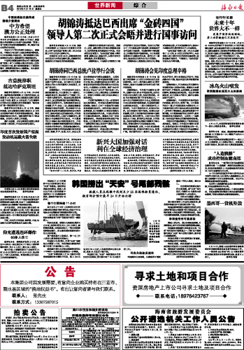 海南日报 世界新闻 012 2010-04-161 2010年04月16日 星期五