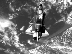 这张美国航天局4月17日公布的电视画面显示“发现”号航天飞机脱离国际空间站开始返程。美国“发现”号航天飞机在与国际空间站对接10天后,于美国当地时间4月17日上午脱离国际空间站,开始返程之旅,预计将于19日着陆。 新华社/路透