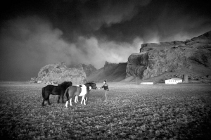 | 4月17日,在冰岛一处农场,农夫索拉林·奥拉夫松试图安抚他的马匹免受夹杂火山灰的乌云惊扰。 新华社/路透