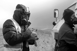 | 冰岛,一名工作人员抱着一只小狗准备撤离受火山喷发影响的地区。 新华社/路透 |