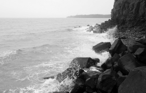 | 玉包港岸边悬崖陡峭,60年前,解放海南的渡海加强团就在这里登陆。