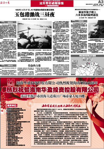 | 海南日报 纪念海南解放60周年特别报道 003 2010-04-191 2010年04月19日 星期一 |