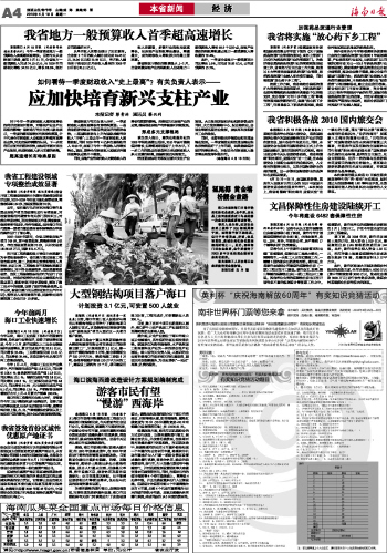 | 海南日报 本省新闻 004 2010-04-191 2010年04月19日 星期一 |