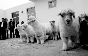 中国转基因克隆绒山羊 研究取得重大突破 4月20日,参观者在拍摄转基因克隆绒山羊。 不久前,位于鄂托克旗的“内蒙古白绒山羊种羊场”诞生了目前国际上规模最大的一批转基因克隆绒山羊,这标志着中国绒山羊现代生物育种技术又有了新的突破。 新华社发