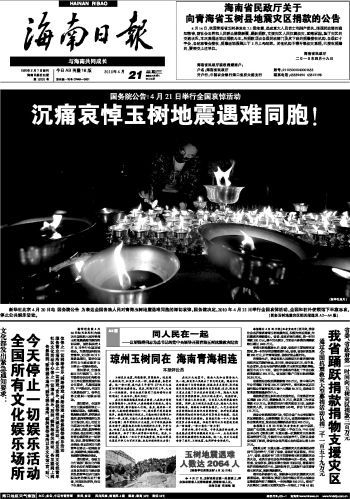 海南日报 头版 001 2010-04-211 2010年04月21日 星期三