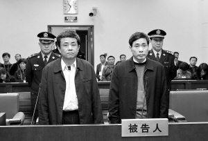 | 4月21日,被告人阙敬德(左)、张志琴(右)在被告席上听候判决。 新华社发 |