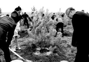 4月21日,鄂尔多斯市煤炭企业职工种植“碳汇林”。 当日,由当地200多家煤炭企业联合倡议的“鄂尔多斯市碳汇林启动仪式”在内蒙古自治区鄂尔多斯市伊金霍洛旗布拉格社的一座山头上举行。这项旨在“遏制气候变暖、拯救地球家园”的植树造林工程,初步计划投入10亿元,在5年之内建设10万亩“碳汇林”。 新华社记者 贾立君 摄
