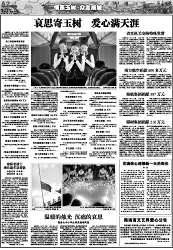 海南日报 情系玉树 众志成城 002 2010-04-221 2010年04月22日 星期四
