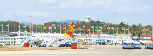 | 三亚凤凰国际机场第一季度旅客吞吐量创历史新高。图为该机场的停机坪。