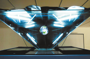 图为三维图像悬浮显示装置的原理样机显示出地球悬浮立体图像。近日在中科院长春光机所研制成功,通过该装置,观众可以360度环绕欣赏立体图像,获得意想不到的感官效果。 新华社记者 宗巍 摄
