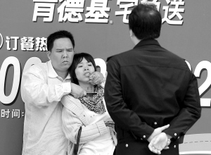 4月23日,在南宁市朝阳路,警方对劫持人质的男子进行耐心劝说。 当日中午,南宁市朝阳路新朝阳商业广场发生一起挟持人质事件,经过南宁警方半个多小时的多方解救,嫌疑人被警方控制后带回审查。新华社记者 黄孝邦 摄