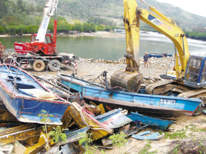 | “三无”船舶销毁现场。本报记者 王红卫 摄 |