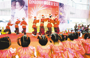 | 知名早教品牌金宝贝去年进驻海口。图为四月二十三日金宝贝举行一周年庆典晚会。
