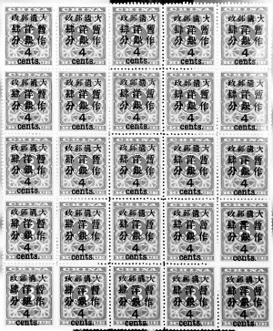 刷新全版红印花邮票的世界纪录 这是在预展上拍摄的1897年红印花加盖改值大字4分共25枚全版邮票。4月24日,在香港苏黎世亚洲拍卖公司举行的邮票春季拍卖会上,1897年红印花加盖改值大字4分的清光绪大龙邮票25枚全版以130.5万港元的价格成交,刷新全版红印花邮票的世界纪录,成为拍卖会首日亮点。 新华社发