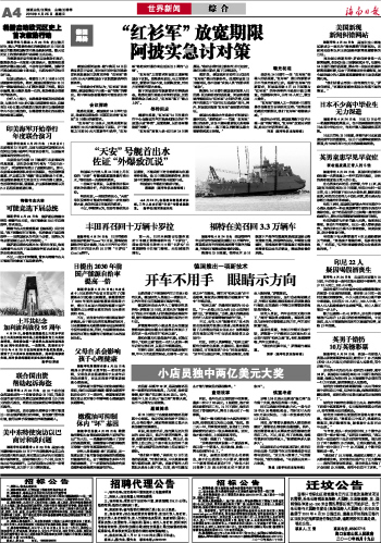 海南日报 世界新闻综 合 004 2010-04-251 2010年04月25日 星期日