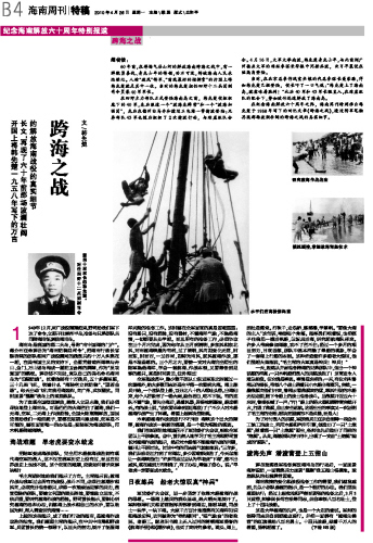 在纪念海南解放六十周年之际,海南周刊特别推出韩先楚于1958年写下的回忆文章《跨海之战》,透过将军笔触再现那场波澜壮阔的跨海之战的真实细节。