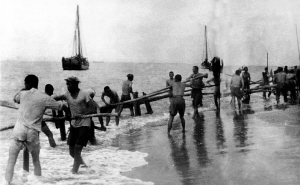 军党委扩大会议,进一步坚定了依靠木船渡海作战的思想。一场海上练兵的群众运动,热火朝天地展开了。军师领导机关和团营指挥所都移到海边,搭起草棚,同战士一块学,一块下海。大家千方百计地搜集有关海洋知识和海战史料,访问被称为“特约顾问”、“活气象台”的老渔民、老船工。就连旧书摊上无人过问的清朝海军提督的《航海手册》和《潮汐表》,也买了来研究参考。滩头、海上,到处是课堂。打秋千,走浪桥,练摇橹,学掌帆。“要做大海的主人”这句话,响彻每个角落。指挥员们吃着饭,也把筷子往碗里一插当帆船,以饭桌当海,研究起航海队形来。许多人带病参加海练,劝不了拦不住:经过一个多月的艰巨努力,日夜苦练,部队中基本消除了晕船的现象,学会了一套海上行船的本领。这种奇迹使许多船老大惊叹,他们竖起大拇指说,“毛主席的大军真是神兵!神兵!”