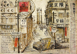 | 素描《海口解放了》由吴坤仁老人耗去半生光阴反复描绘而成。1950年4月23日,私立海南大学附中学生吴坤仁亲眼目睹了解放军进城。而这一画面也被吴坤仁用炭笔记在了他的画本里。此后几十年来持续修改勾勒,直至2007年9月才完成。